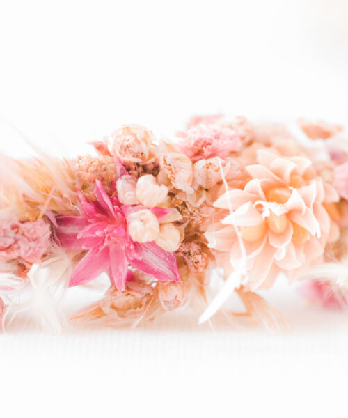 Zarter Blumen Haarreif in rosa, pink und Naturtönen.