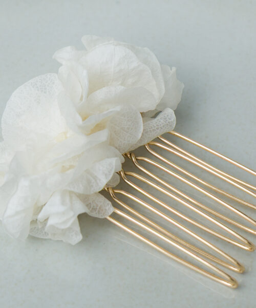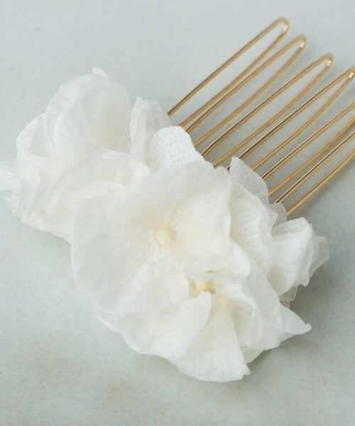Zarter Blumen Haarschmuck aus echten, stabilisierten Blüten der Hortensie.